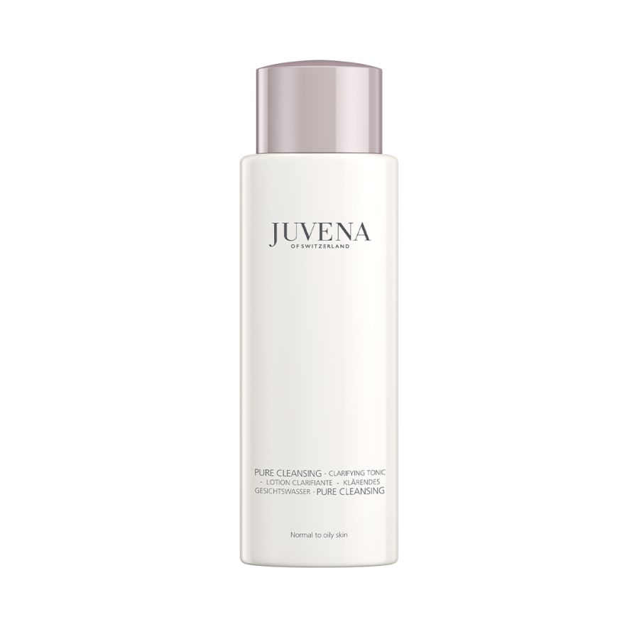 Pure Clarifying Tonic de Juvena es un tónico de limpieza ideal para una piel mixta con tendencia a grasa. Su complejo de vitaminas (B3, B5 y B6, C pura y E pura) estimulan la micro-circulación y mejoran la capacidad de absorción de productos nutritivos, además tiene un efecto hidratante y de tratamiento. Por otro lado contiene extracto de lirio que equilibra y purifica la piel y extracto de menta acuática que limpia, purifica y refresca la piel.